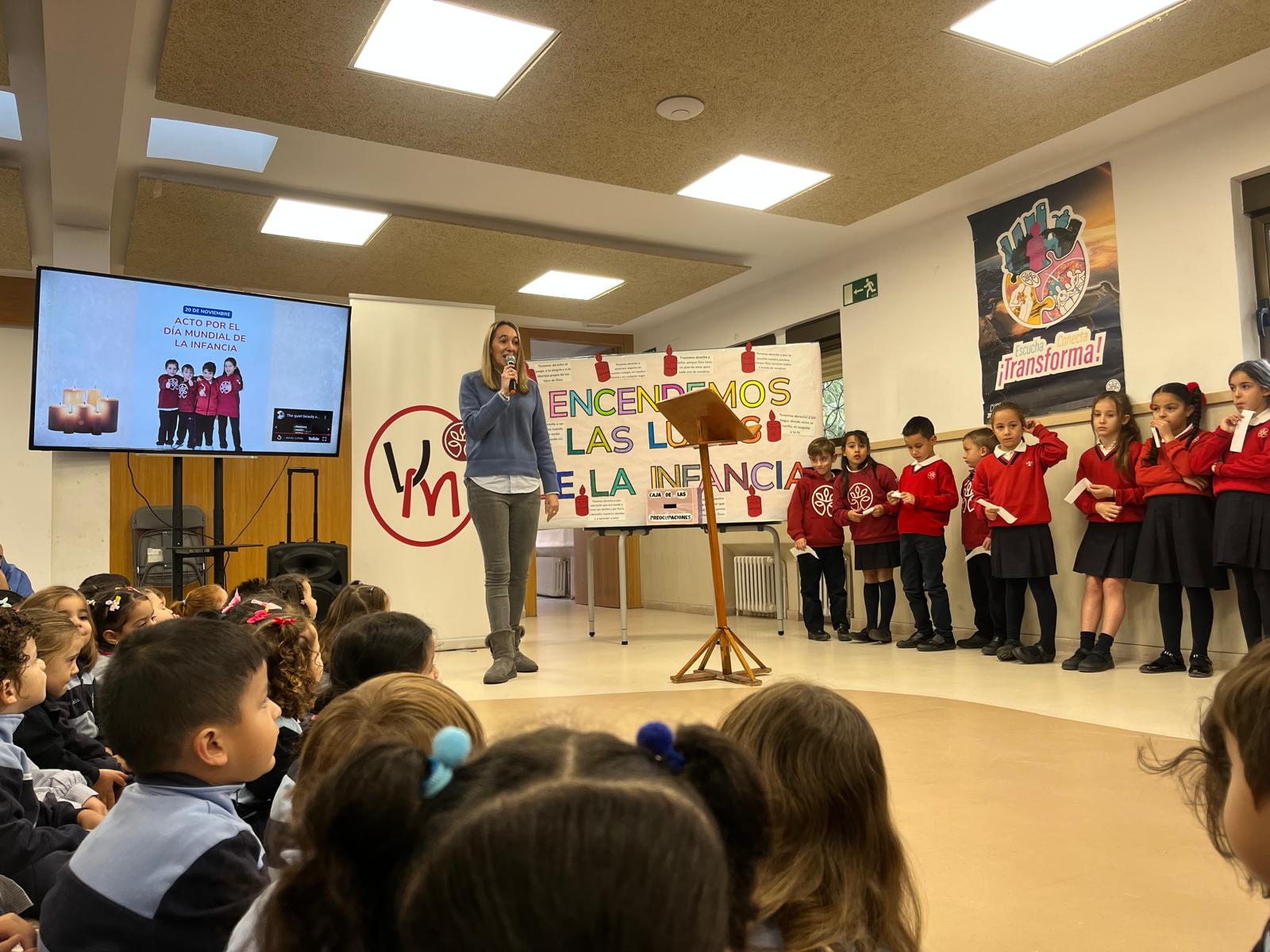 Los alumnos leyeron el manifiesto del Día de la Infancia, acompañado por el mural “Encendemos las luces de la infancia”. En él se recordó que los derechos de los niños son luces que acompañan su crecimiento: cariño, respeto, felicidad, alegría, esperanza y seguridad. Además, proclamaron que todos los niños son hijos amados de Dios y que cada uno tiene derecho a un hogar lleno de afecto, a la educación integral, al juego, a ser escuchado y a soñar sin límites.