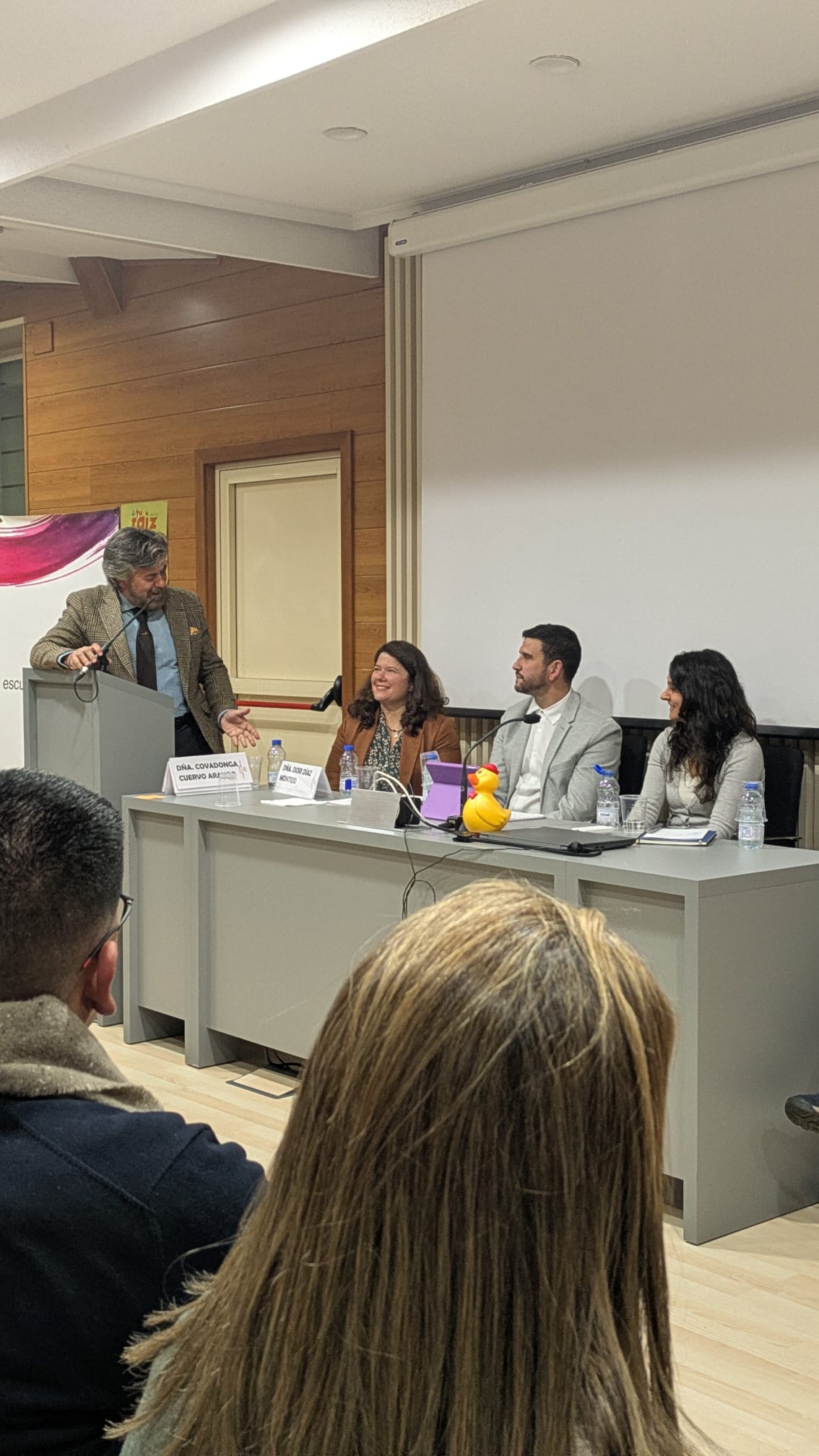 En representación de nuestro centro, Cristian Gutiérrez, profesor e integrante activo de proyectos de convivencia escolar, participó en una mesa redonda dedicada al papel de las familias en la vida del centro. Durante su intervención, destacó la cultura de participación que forma parte de nuestra identidad educativa y compartió una breve presentación del Plan de Mediación, un proyecto que promueve la resolución pacífica de conflictos y el desarrollo emocional de nuestro alumnado.